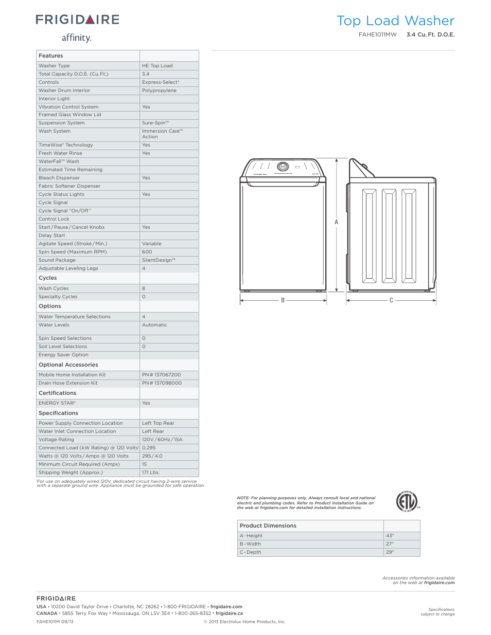 View and download frigidaire affinity 6000 series service manual online.