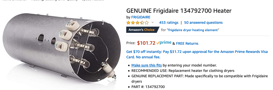 Frigidaire Clothes Dryer Fix For No Heat Heater Coil Replacement Electric Dryers Clothes Dryer Frigidaire